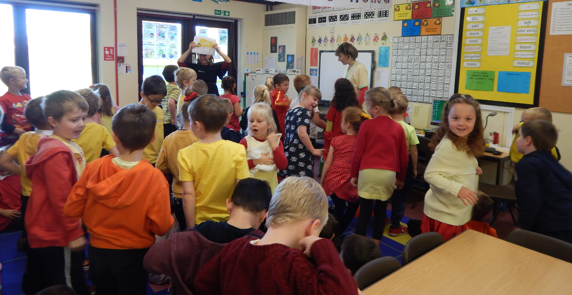 Year groups take it in turn to regularly visit our friends next door at Chestnut Court Care Home. The children participate in musical theatre, involving story telling, singing and dance. The young children and elderly residents all enjoy themselves sharing some special time together.